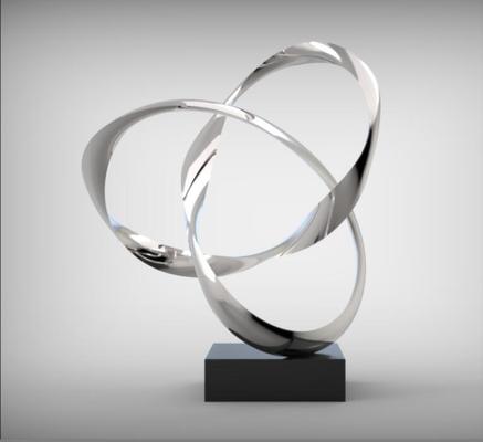This sculpture features intertwined, polished stainless steel rings that embody modern art’s elegance. The reflective surface captures light and movement, creating a dynamic visual interplay. It’s a sophisticated statement piece, blending geometric precision with fluidity, perfect for elevating contemporary spaces.