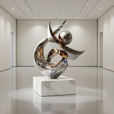 Introducing “Ascension,” a sculpture that captures movement in still metal. This piece explores the dialogue between two elements: the powerful, upward surge of the spiral and the grounding presence of the marble base; the contrasting cool silver and warm gold tones; the intentional roughness of the metal against the stone's smooth polish.